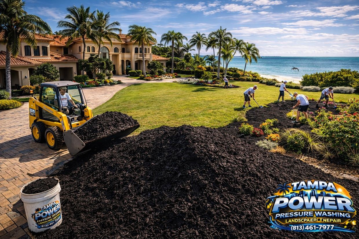 Tampa Power delivers superior mulching services using premium-grade landscape mulch, professional installation techniques, and experienced crews to ensure long-lasting beauty, weed control, moisture retention, and exceptional curb appeal.